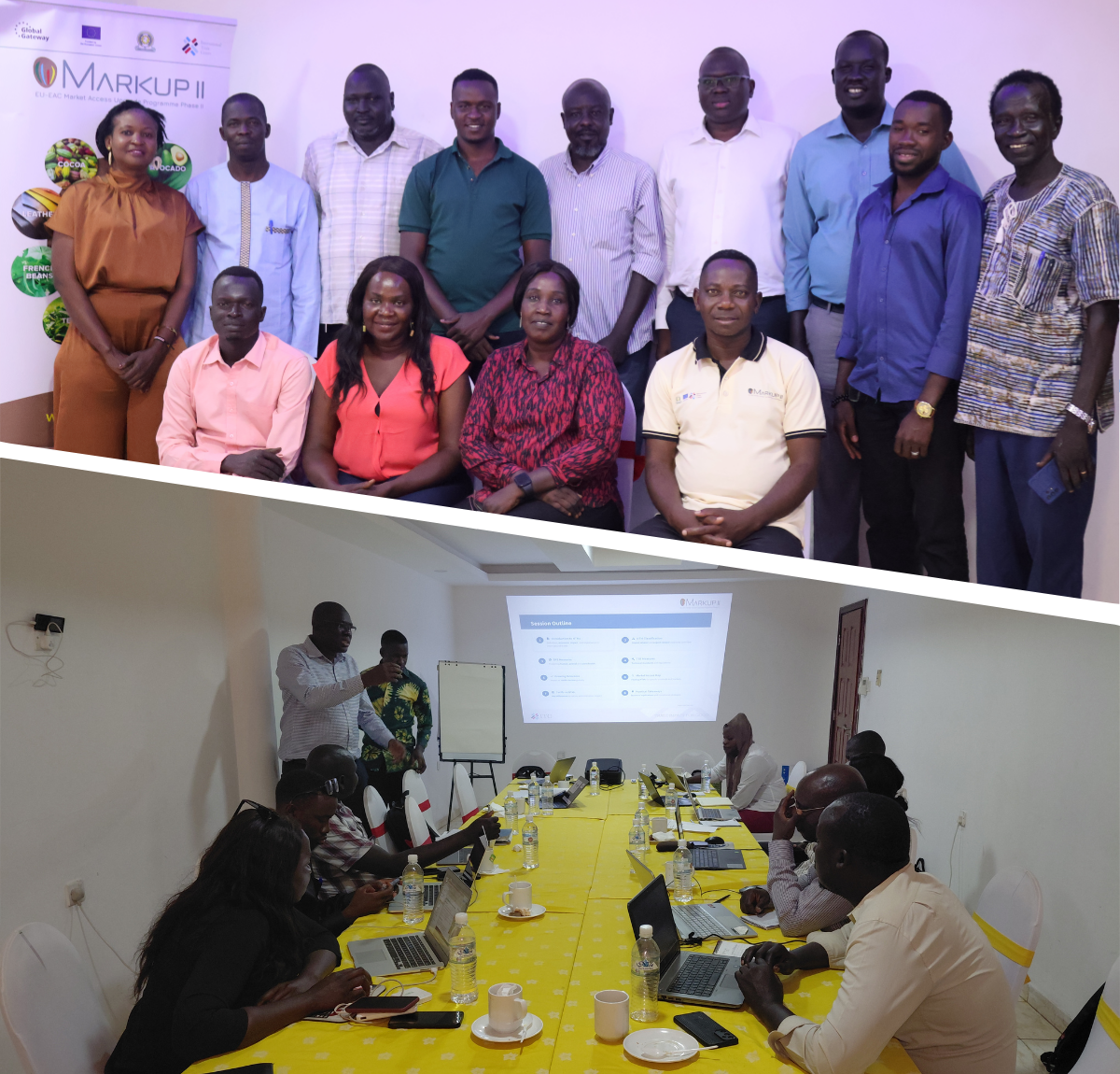 SOUTH SUDAN December 1-5, 2025 - Two Ugandan Certified Trainers, Dr. Aaron Ecel and Mr. Humphrey Ngobi, facilitated a Training of Trainers programme on market access and related online tools. This marked the first time a ToT was delivered entirely by certified trainers, representing an important milestone in the programme’s evolution. The workshop convened 11 participants from South Sudan’s key institutions, including government ministries, the National Bureau of Standards, the entrepreneurs’ association, the chamber of commerce, and the university, among others. This was an activity under the EU-EAC Market Access Upgrade Programme (MARKUP II) funded by the European Union (EU). |